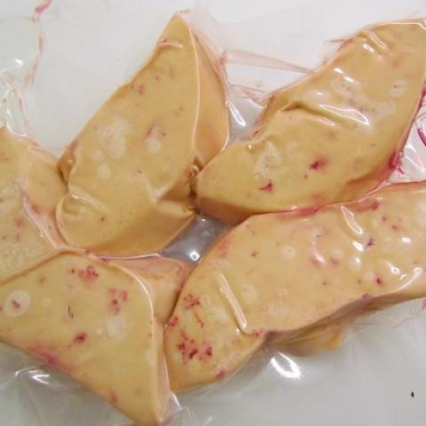 Foie gras mi-cuit . Prêt à consommer, vous aurez juste à le couper en tranche. Si vous préparez votre plat à l'avance, il faudra filmer le plat car sans conservateur notre foie gras prendra de la couleur.